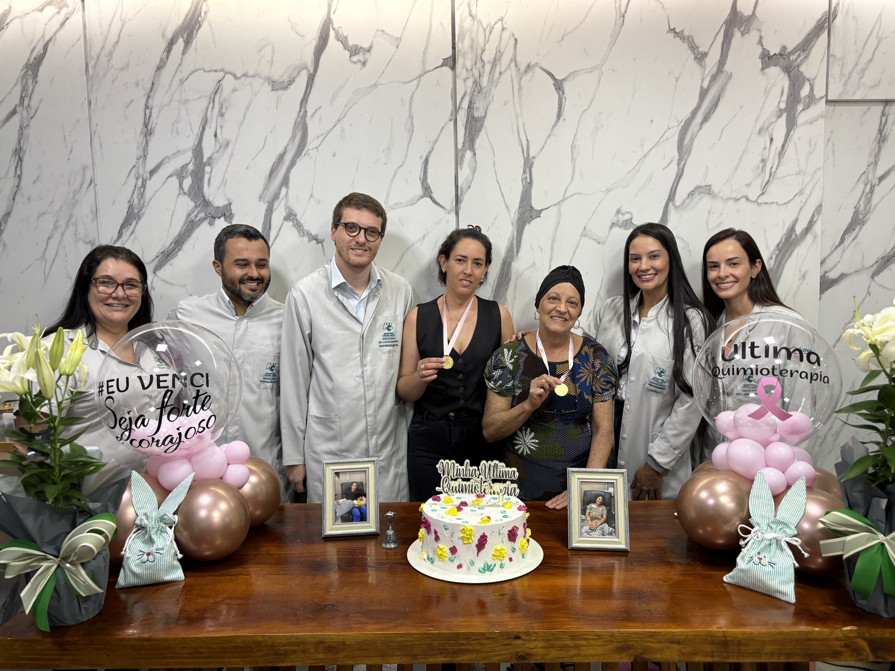 A enfermeira Jaqueline Rocha destacou a felicidade de toda a equipe do Serviço Oncológico. “É com muita alegria que estamos aqui para poder comemorar a alta de duas pacientes de quimioterapia. Foram meses de tratamento, foram meses de dedicação da equipe e de muita fé e força dos pacientes. Então, hoje nós fizemos uma singela homenagem a elas que são merecedoras do reconhecimento. Eu quero agradecer a todos os familiares das nossas pacientes que hoje estiveram aqui conosco nessa homenagem tão calorosa e dizer para os familiares que sem a presença deles, o apoio de cada um deles em casa, nada disso seria possível”, pontuou.