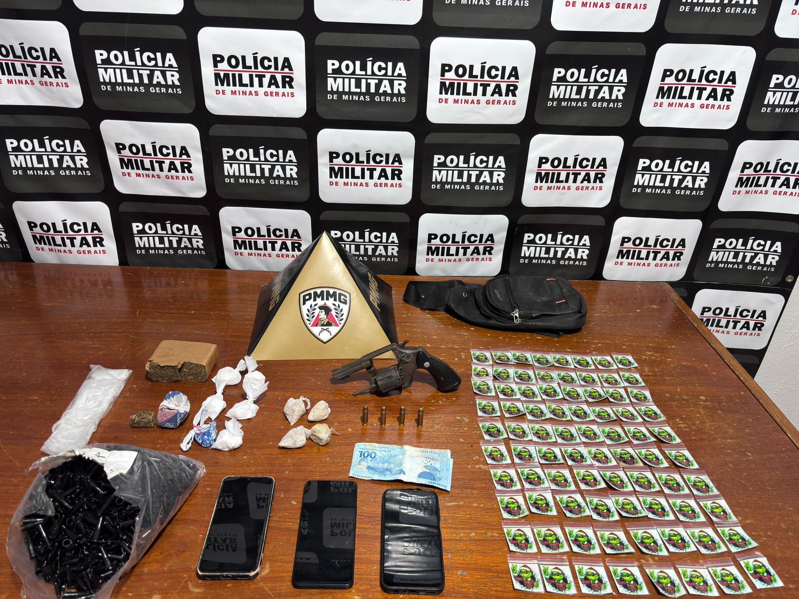 Com os autores foram apreendidos uma arma de fogo de fabricação artesanal, um revólver calibre.38, quatro munições do mesmo calibre, meia barra e dois tabletes de maconha, seis pedras brutas de cocaína, quatro pedras brutas de crack, diversas embalagens para acondicionar entorpecentes, três telefones celulares, dinheiro e uma bolsa. Todos os envolvidos foram conduzidos à Delegacia de Polícia Civil de Abre Campo, onde foram adotadas as medidas legais cabíveis.