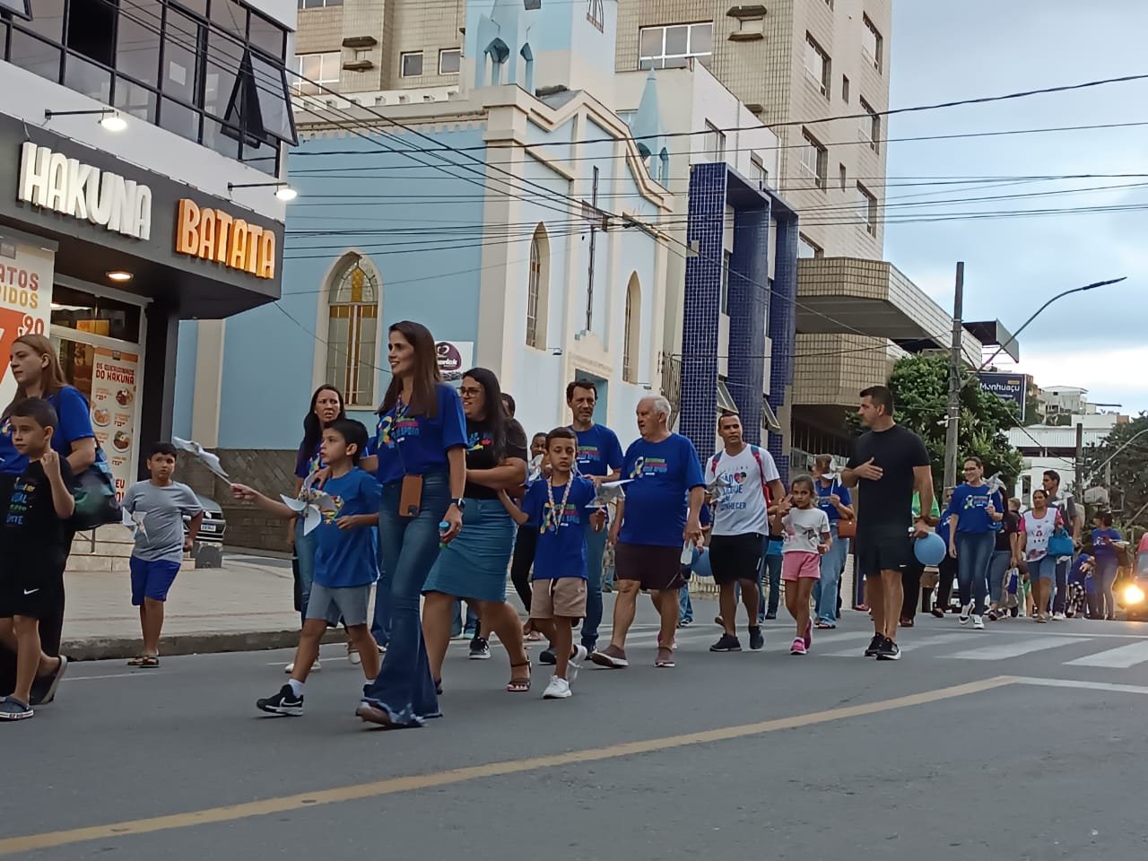 MANHUAÇU (MG) - A Associação de Mães e Amigos dos Autistas de Manhuaçu (AMAAM), realizou na tarde deste sábado, 11, a Caminhada Azul do Acolhimento ao Autista, para conscientizar sobre o Transtorno do Espectro Autista (TEA), promover inclusão e combater o preconceito. O evento contou com a participação de familiares, apoiadores e autistas, que saíram do coreto da praça, seguindo pelas ruas Amaral Franco, Salime Nacif, Antônio Pupim, Avenida Getúlio Vargas (Coqueiro), Juventino Nunes, Leandro Gonçalves e novamente ao centro da cidade.