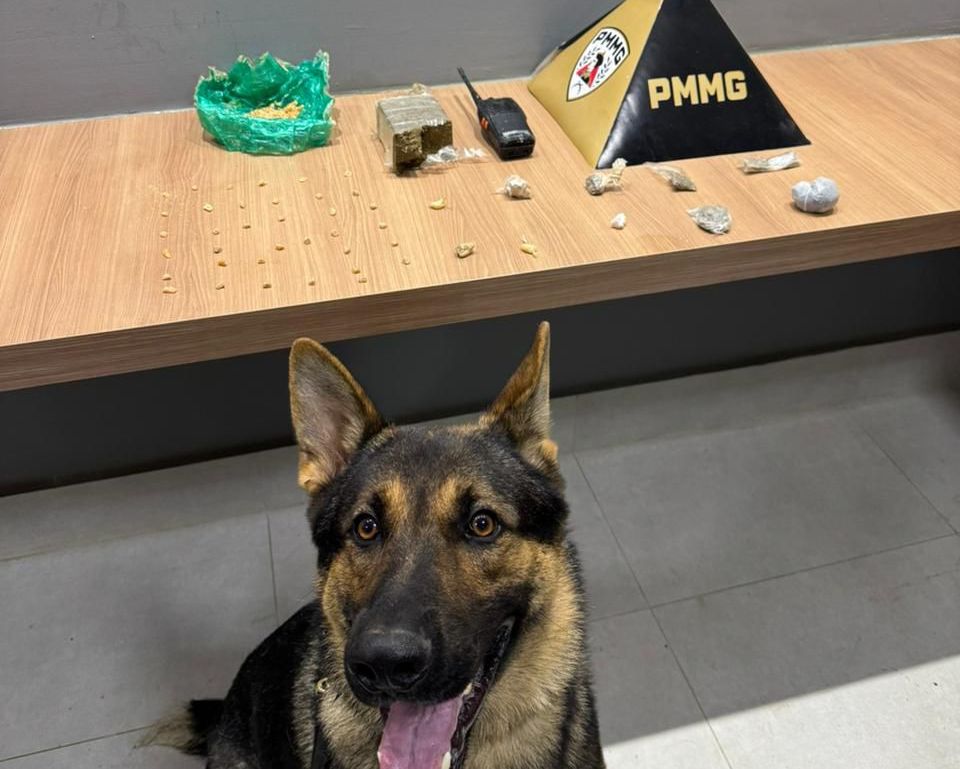 Com apoio da equipe com cães, foi realizada varredura em um lote vago próximo, onde foram localizadas ainda uma barra de maconha e uma porção grande da mesma substância.