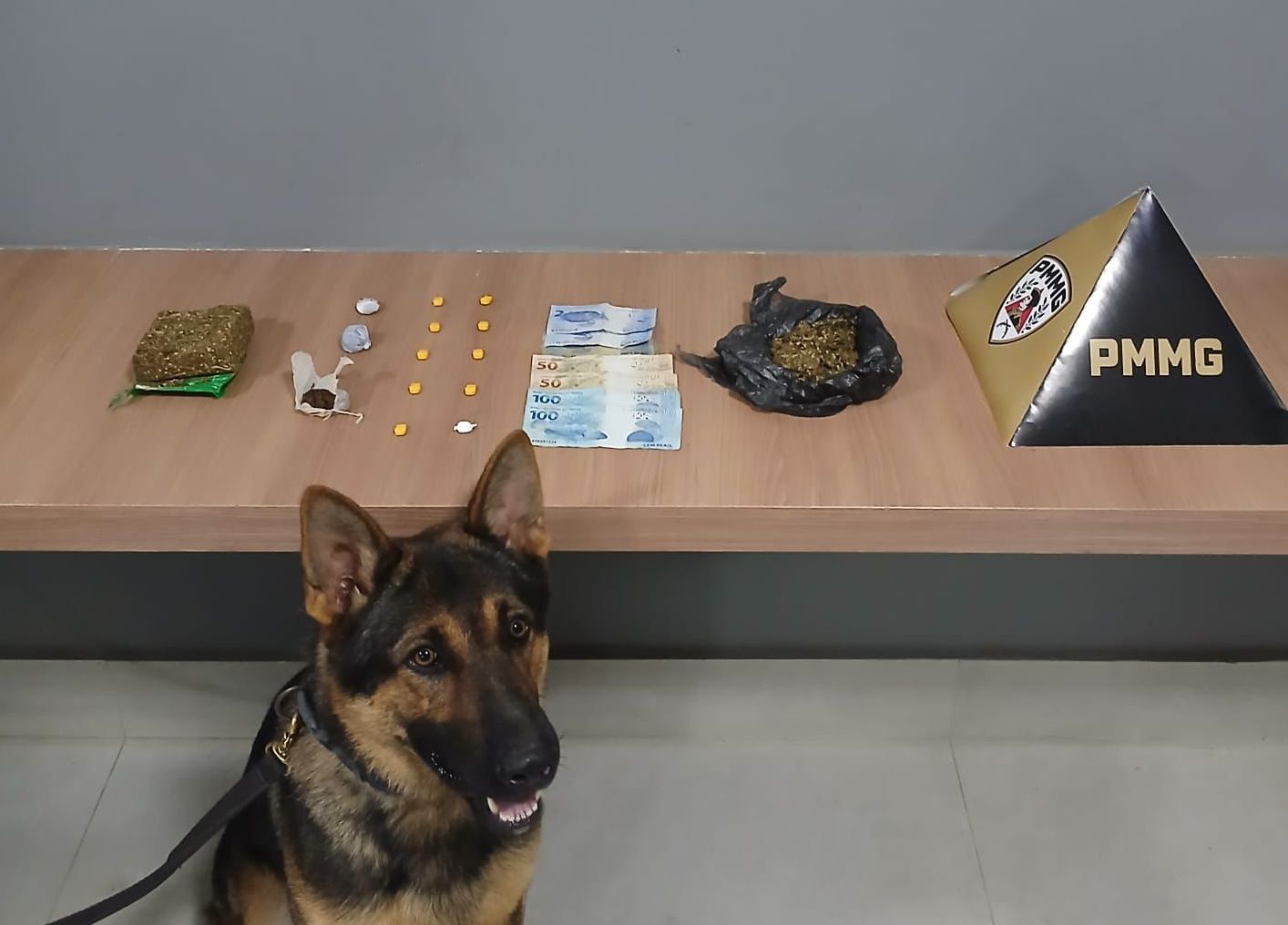 Durante a busca pessoal, foram encontrados nove comprimidos de ecstasy, três porções de maconha, um papelote de cocaína e R$ 308 em dinheiro.