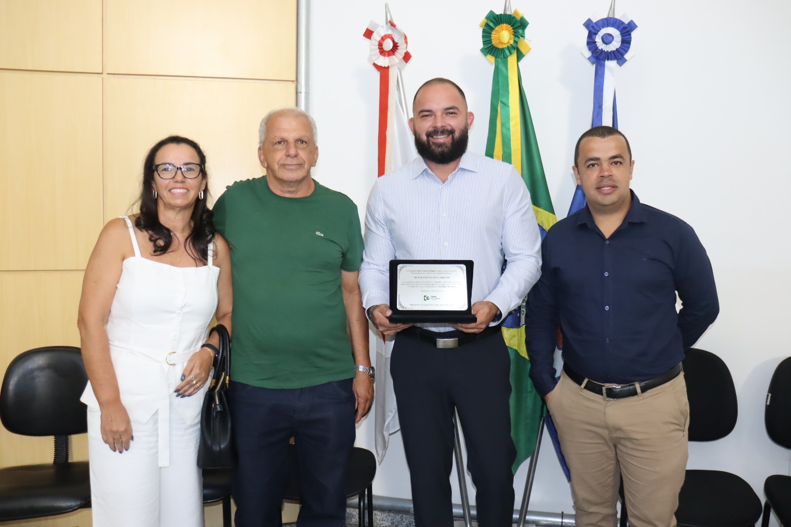 Na cerimônia, o vereador Jânio do Catinga realizou a entrega da Moção de Congratulações e da placa de homenagem.