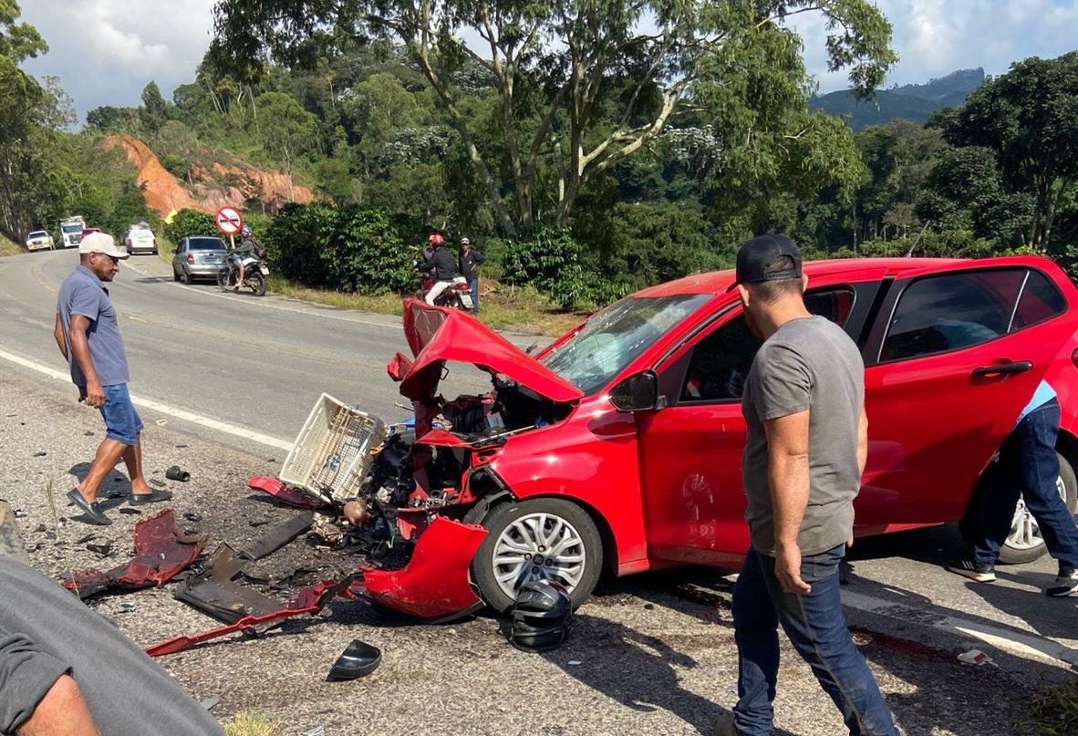 IBATIBA (ES) - Um grave acidente envolvendo dois carros e uma motocicleta interditou totalmente a BR-262 na manhã desta segunda-feira (20), no trecho entre Ibatiba e Iúna, próximo ao trevo de acesso ao município de Lajinha.
