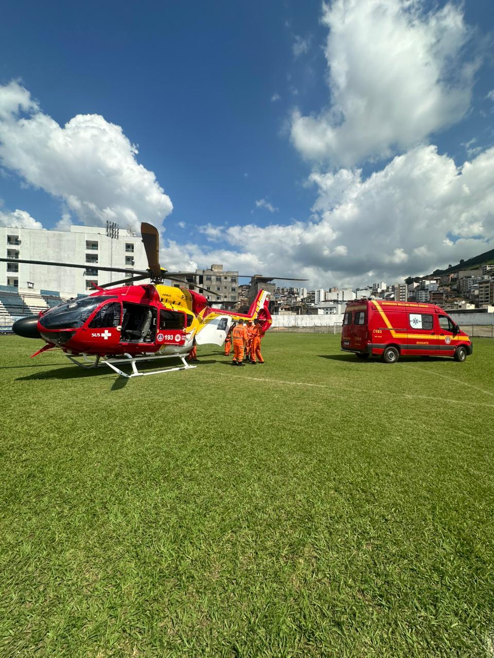 MANHUAÇU (MG) - Na tarde desta quarta-feira, dia 22, uma operação de alta complexidade mobilizou o Corpo de Bombeiros Militar de Minas Gerais. A aeronave Arcanjo 14 realizou o pouso no Estádio Juscelino Kubitschek, conhecido como Estádio JK, para a transferência de um bebê recém-nascido de apenas 18 dias.