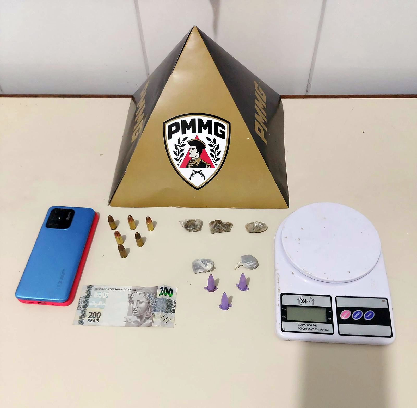 Durante buscas no local e nas imediações, foram apreendidos três pinos de cocaína, cinco buchas de maconha, seis munições intactas calibre 9mm, R$ 200 em dinheiro, uma balança de precisão e um aparelho celular.