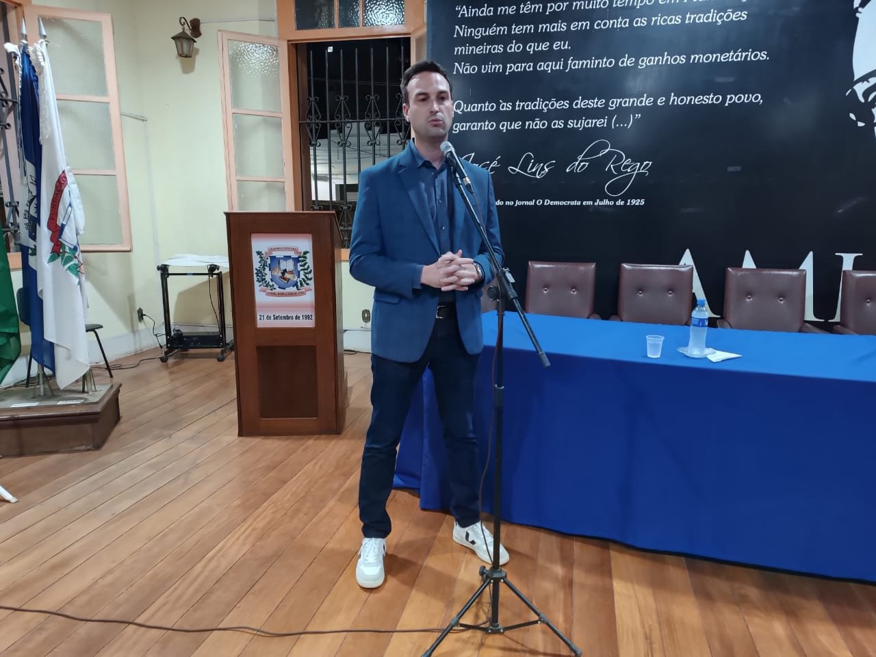 MANHUAÇU (MG) - A Academia Manhuaçuense de Letras realizou nesta sexta-feira,24, a reunião ordinária, com a presença de acadêmicos e convidados, para assistirem a palestra sobre a “Remição de pena através da leitura. A reunião aconteceu no Salão Nobre “Ilza Campos Sad”, com a presença do juiz da 2ª Vara Criminal e de Execuções Penais de Manhuaçu, Dr. Rodrigo Maas dos Anjos.