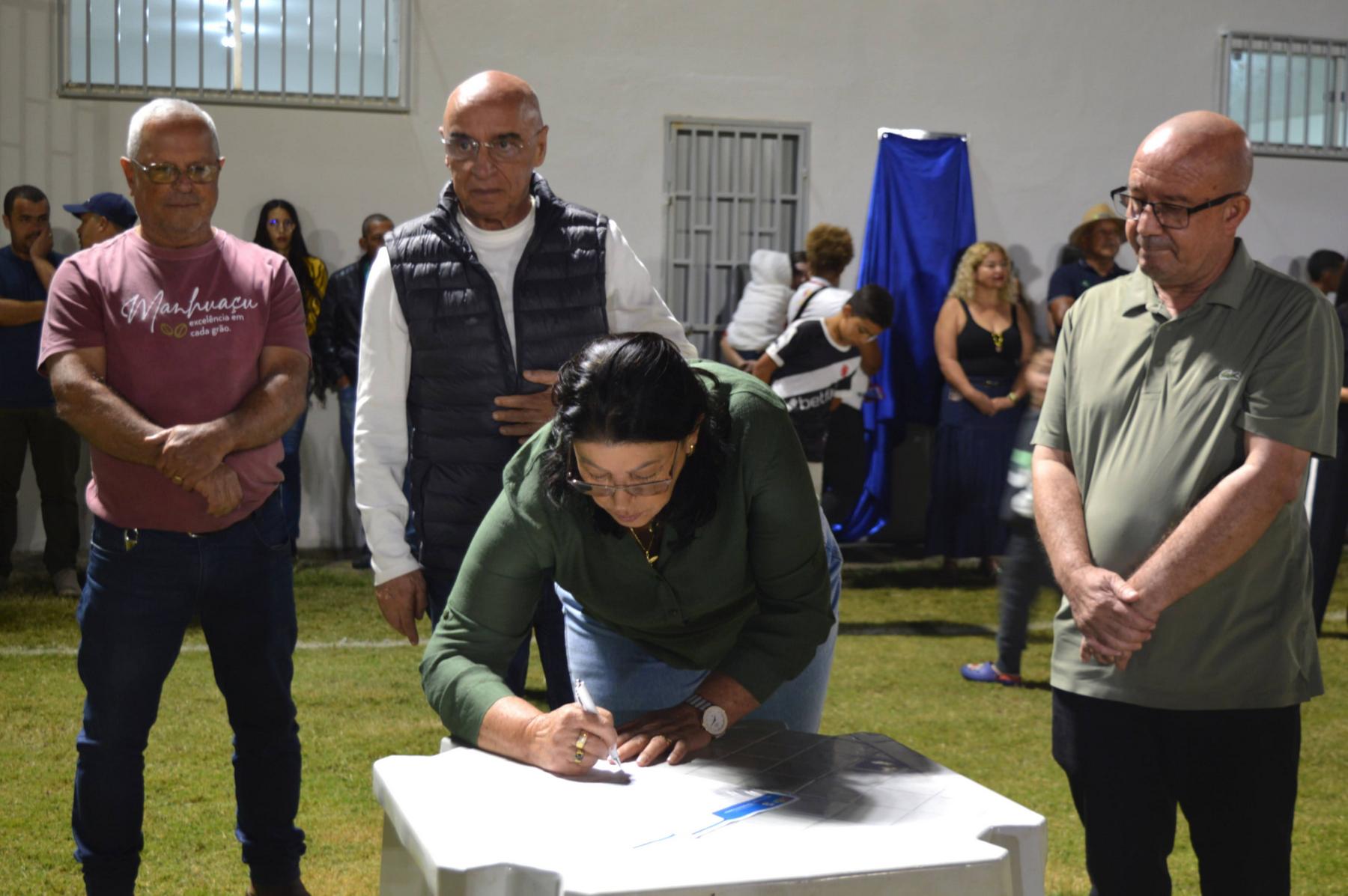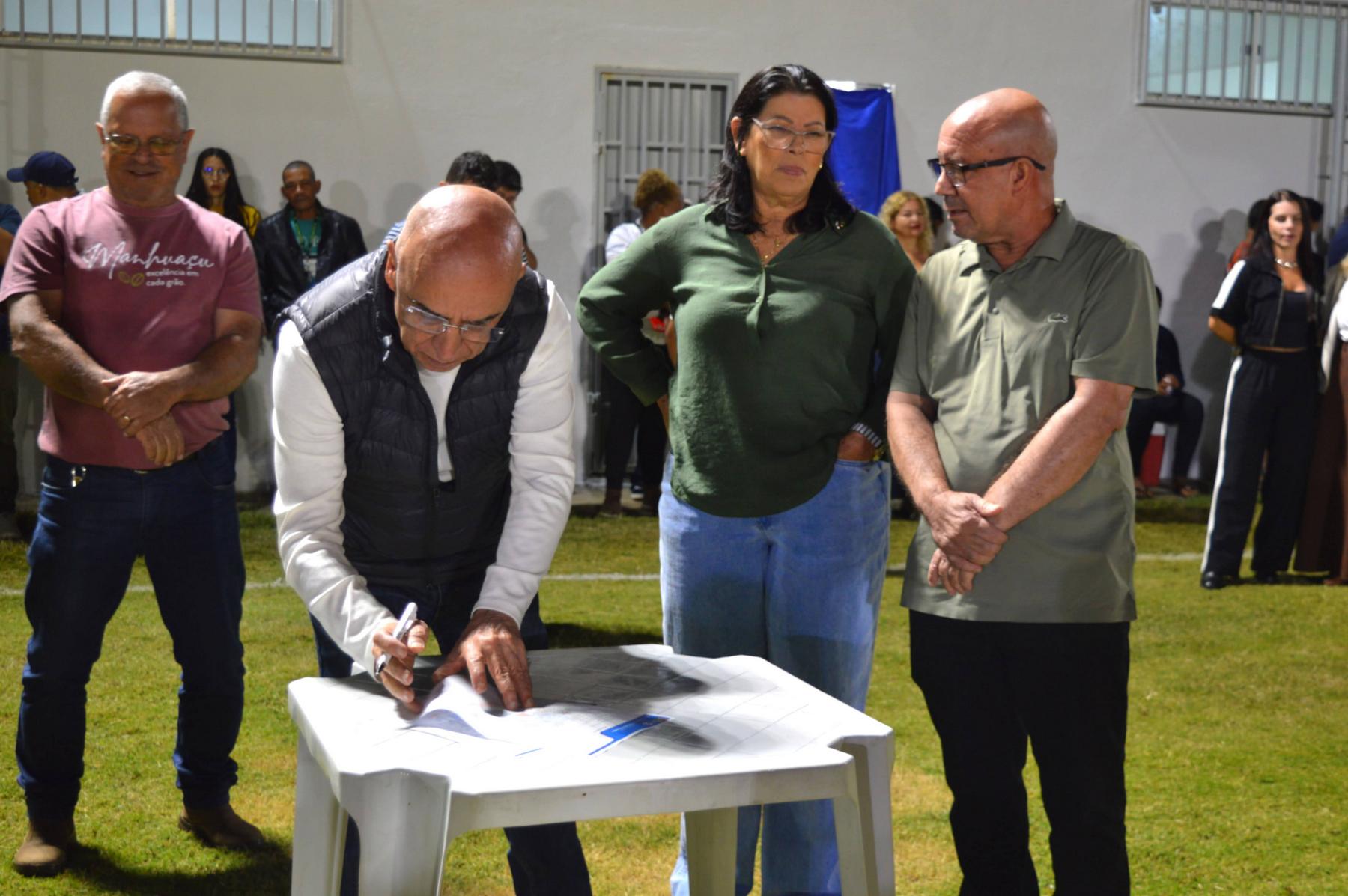 Aproveitando o encontro com a comunidade, as autoridades assinaram a ordem de serviço para o calçamento de mais seis ruas do distrito, obra que será executada com recursos destinados pelo Deputado Federal Mário Heringer. O parlamentar reforçou seu vínculo com o município ao declarar que "Nossa parceria com Manhuaçu é sólida e baseada em resultados. Trazer o recurso para o calçamento e ver a alegria desta comunidade com o novo estádio reafirma nosso compromisso de trabalho contínuo pela cidade."