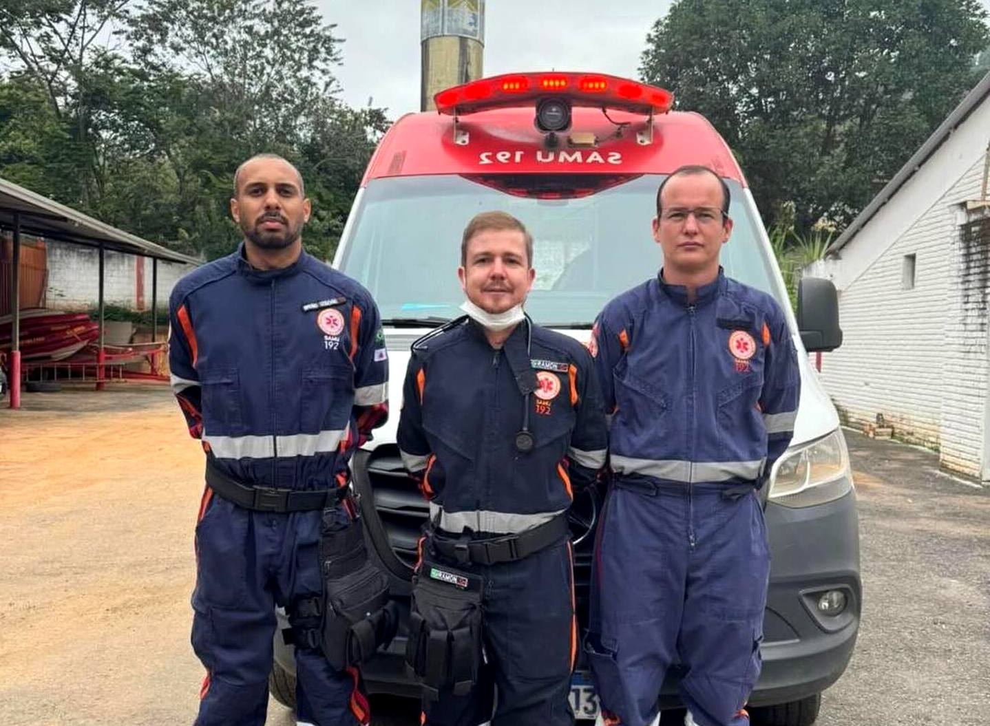 MANHUAÇU (MG) – A equipe formada pelo médico Ramon, o enfermeiro Bruno e o condutor socorrista Cleiton, do Serviço de Atendimento Móvel de Urgência (Samu), realizou um parto dentro de uma ambulância na manhã desta terça-feira (28/04), durante atendimento a uma gestante em trabalho de parto.